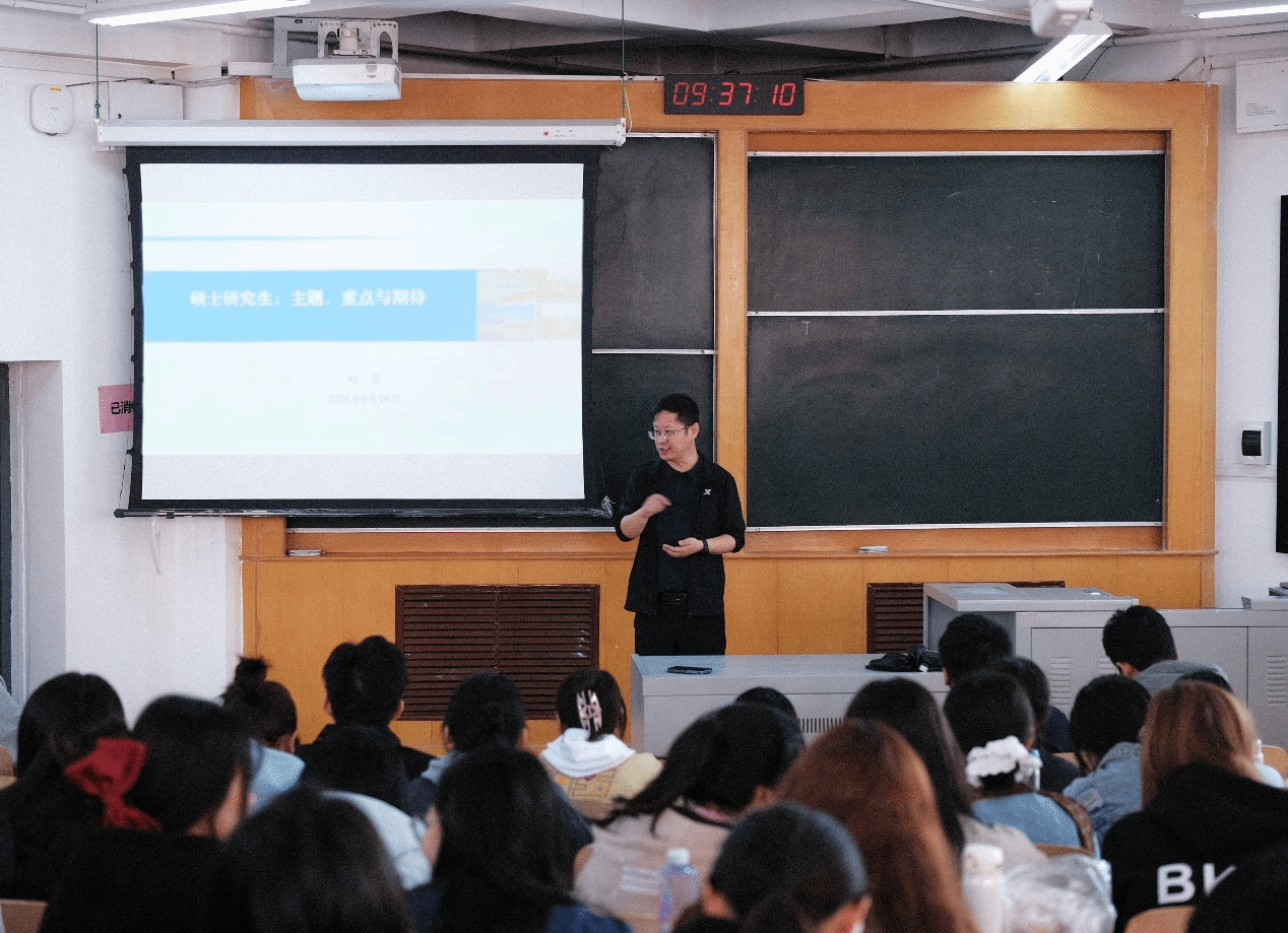 刘岗副院长首先对学校学位与研究生教育相关政策进行了解读,系统介绍了研究生培养工作、学位工作和奖助学政策,让25级研究生对未来三年有了清晰的目标与规划。
