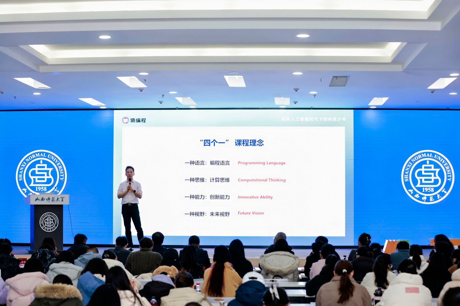 签约仪式后,猿编程创始人、我校客座教授李翊为师生作了题为《AI时代下教育新范式》的学术报告,并与在场师生进行了深入的互动交流。