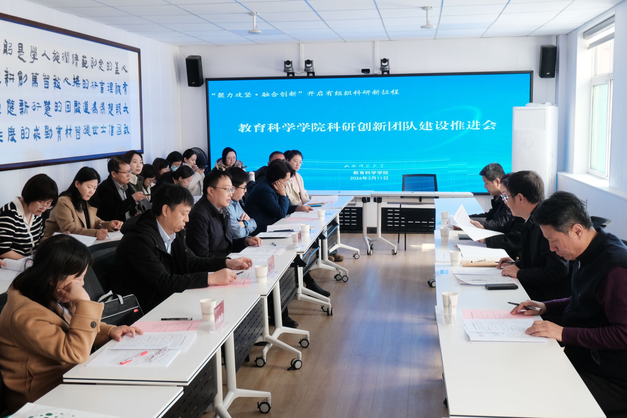 会议指出,组建科研团队,是贯彻学校科研工作大会精神、落实有组织科研思路的关键举措,旨在更好统筹推进教育学科建设,打造形成若干区域一流、特色鲜明的研究方向。会议强调,各团队要进一步提高政治站位,强化思想引领,深刻认识团队建设在提升学院核心竞争力中的重要作用,以高度的政治自觉推动工作高质量开展;要紧紧围绕“4+4”学科布局,进一步明确团队主攻方向,细化形成若干具有牵引性、影响力的研究选题,以重大选题带动团队的研究方向明确起来、任务聚焦起来;进一步完善团队运行机制,落实好团队负责人负责制,定期组会研讨、交流分享、督导推进,切实将选题细化为具体的、压茬推进的项目、论文、著作等可见、可抓的工作,并最终转化为具有标识度的研究成果;进一步突出目标导向,多设计高阶性、挑战性、追赶性的目标,改变四平八稳的工作状态,将每个团队都打造成特色方向的攻坚堡垒;团队负责人要有大胸怀、大格局,凝聚团队合力,深化协作攻坚,进一步加强对年轻人的支持,把团队中青年博士的专业发展作为重中之重,努力让团队中的年轻人尽快脱颖而出,让团队中的每个人都有获得感,增强团队的凝聚力与可持续发展力。