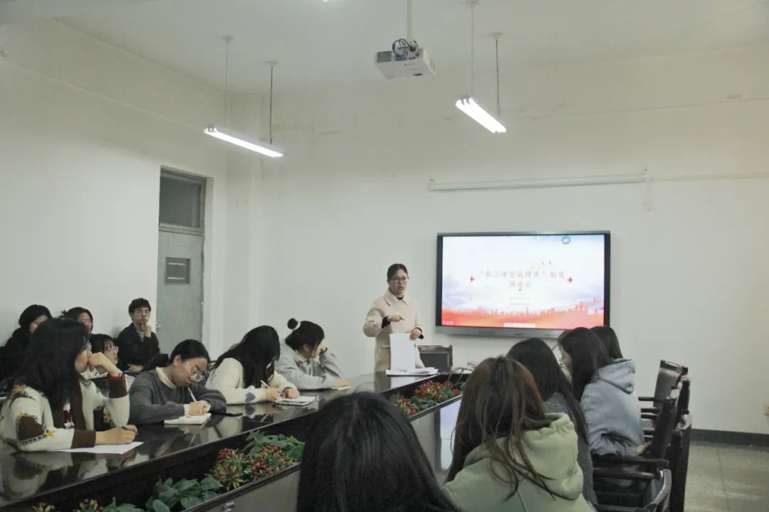 3月22日上午,我院在七号楼509会议室召开“第二课堂成绩单”制度推进会。会议由团委老师高敏君主持。各部门、社团负责人参加。