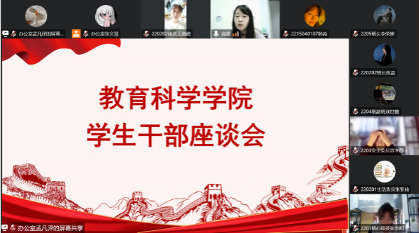 为了提高学生干部的综合素质和工作能力,激发我院学生干部工作热情,充分发挥好学生干部在自我管理、自我服务、自我教育、自我监督中的积极作用。11月18日下午,我院召开新学期学生干部线上培训会暨座谈会,院党委副书记高霞、2022级各班级及院学生会主要学生干部参加会议。会议由院学生会执行主席郭佳雯主持。