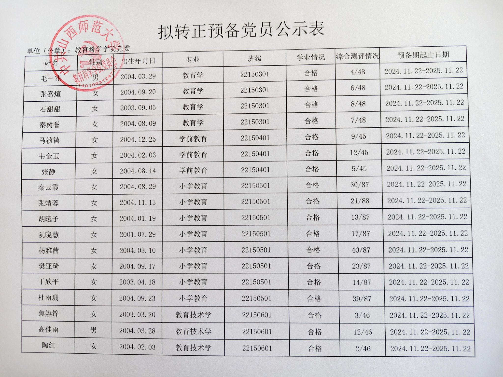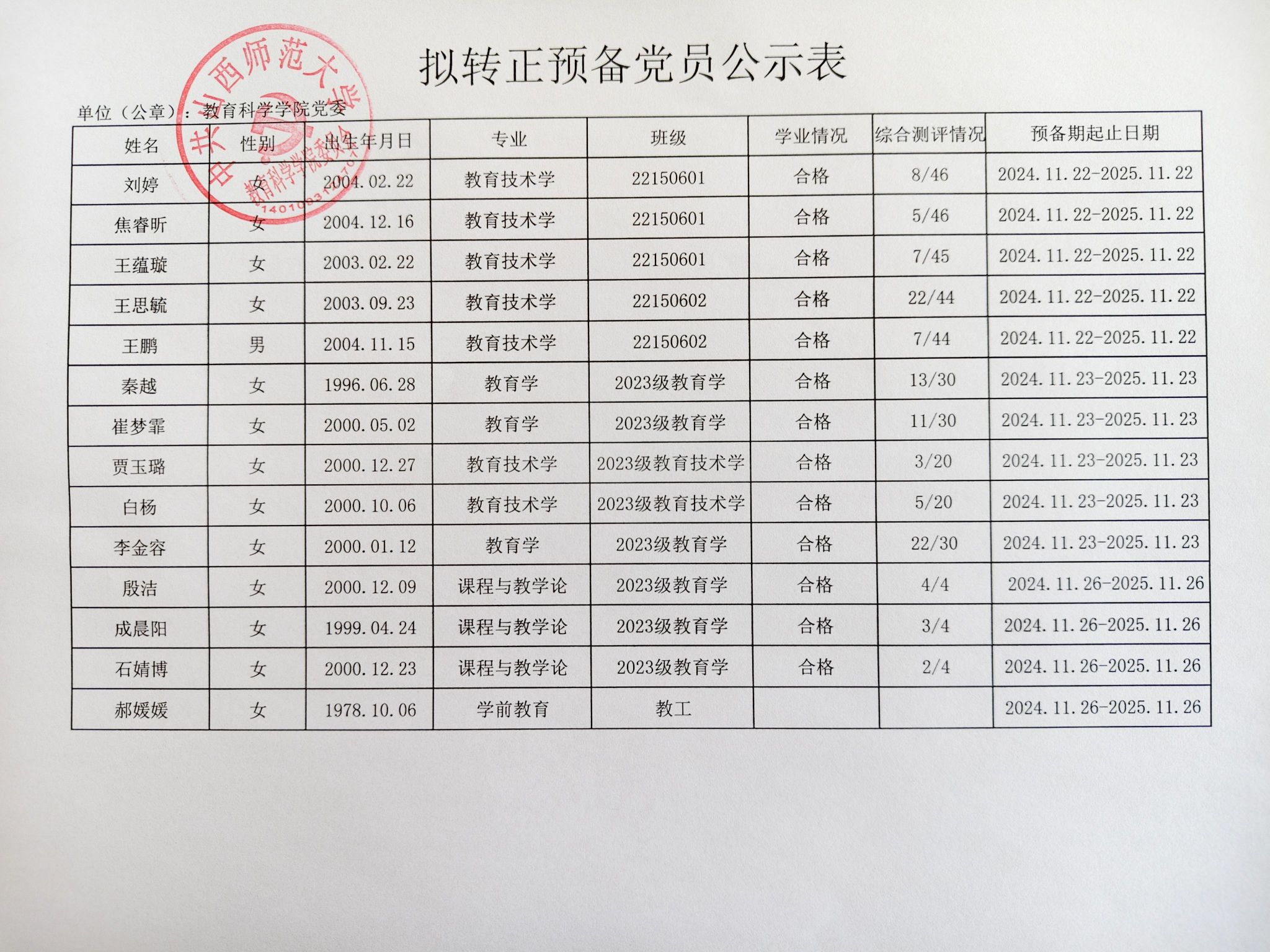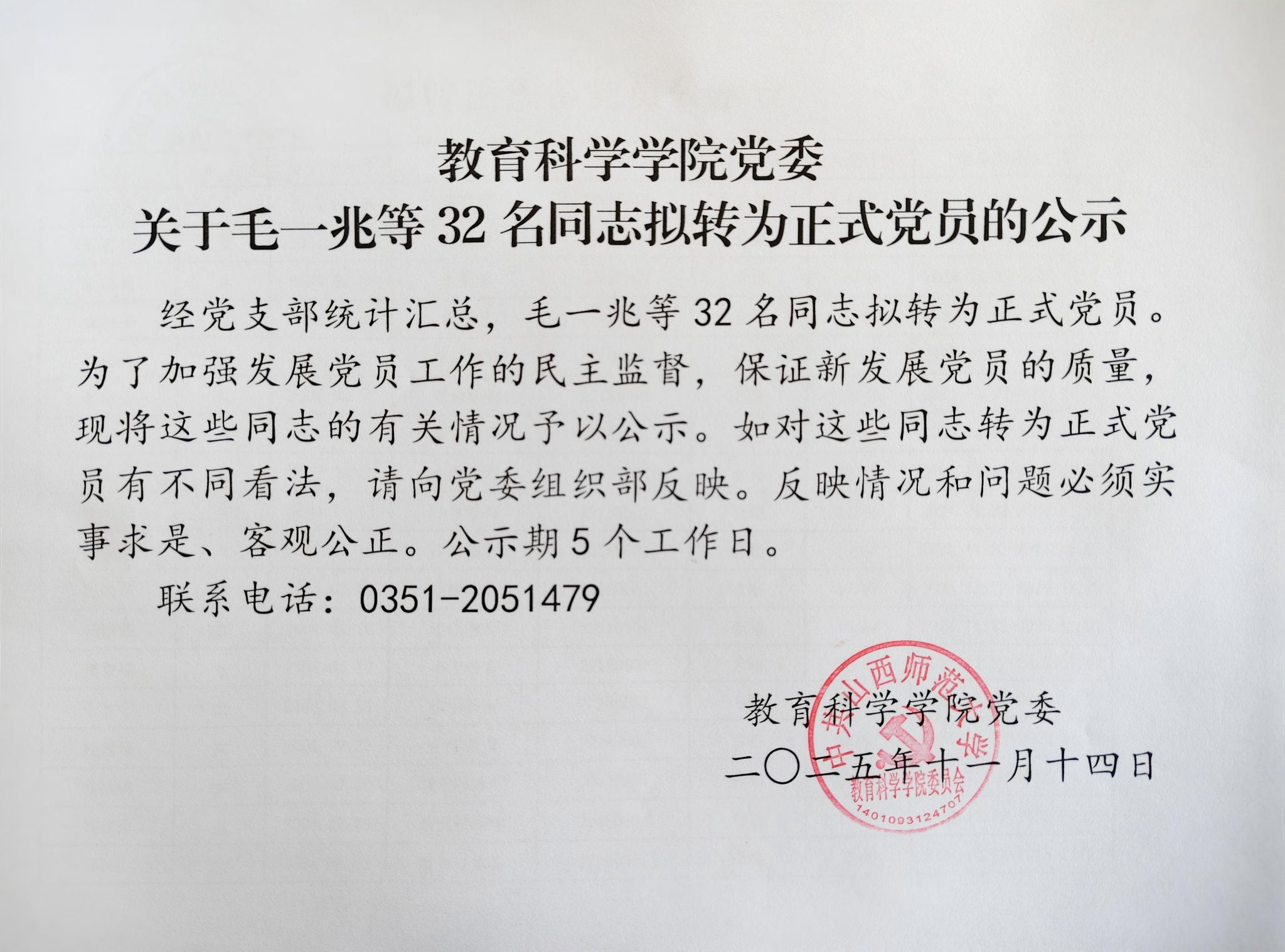 关于毛一兆等32名同志拟转为正式党员的公示