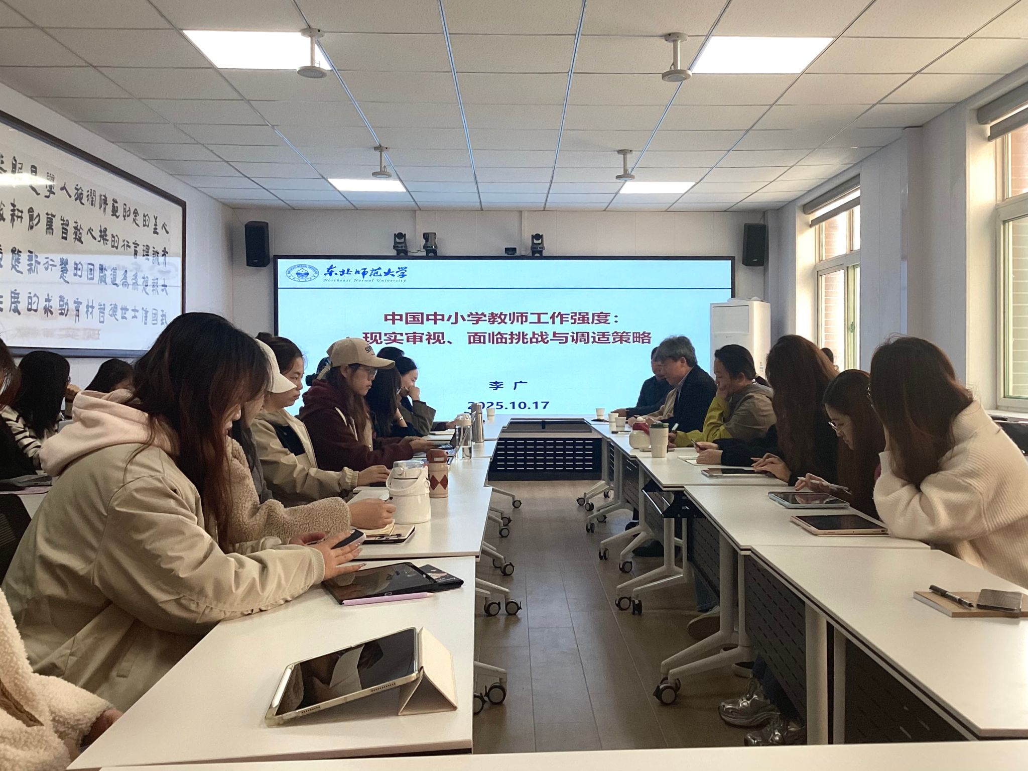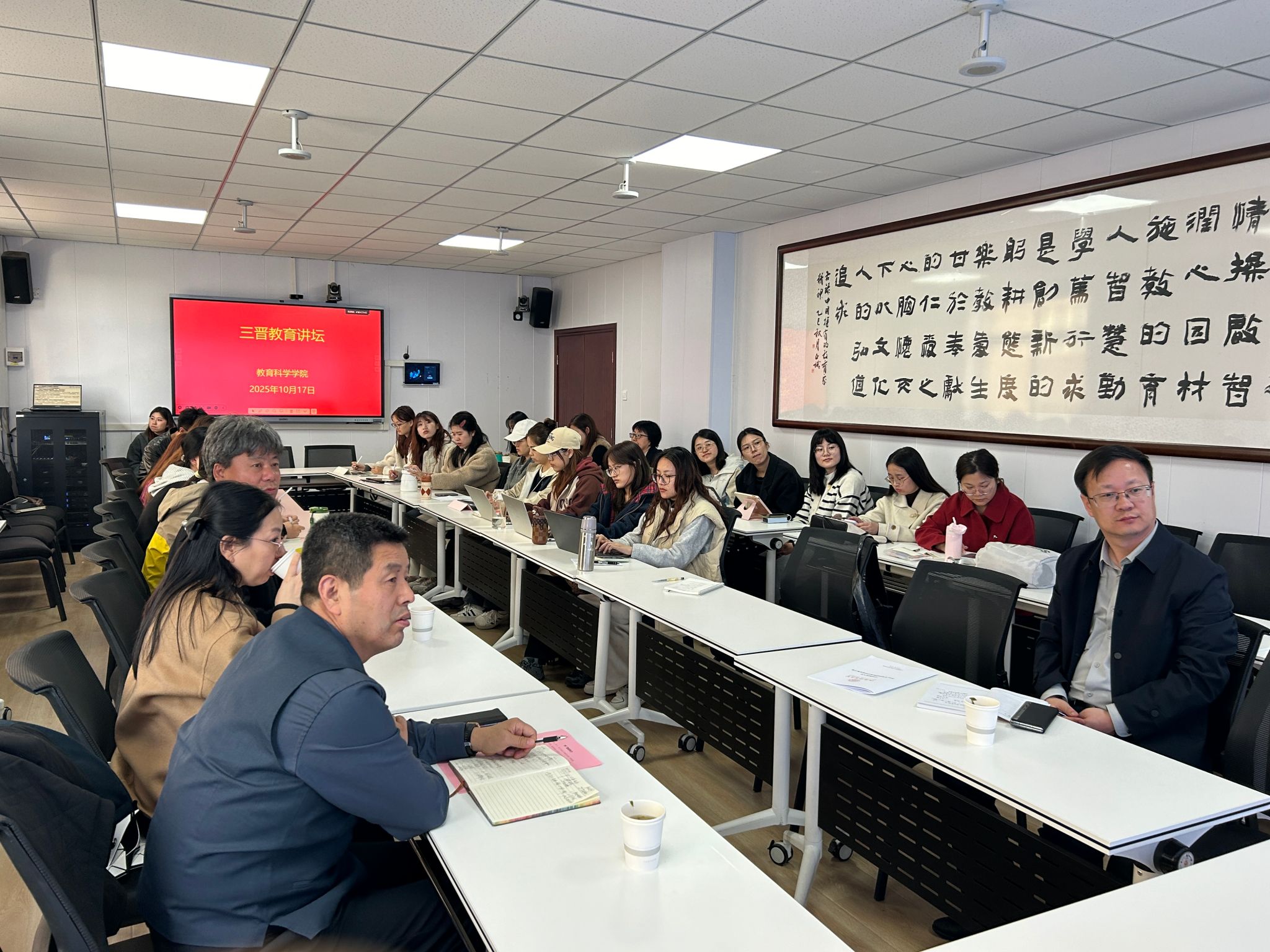 2025年10月17日,我院在南区8号教学楼212多功能室举办第四十三期“三晋教育讲坛”。本次讲坛特邀东北师范大学李广教授担任主讲嘉宾,院党委书记闫建璋教授主持报告会,学院部分教师及研究生共计30余人参与了此次学术活动。