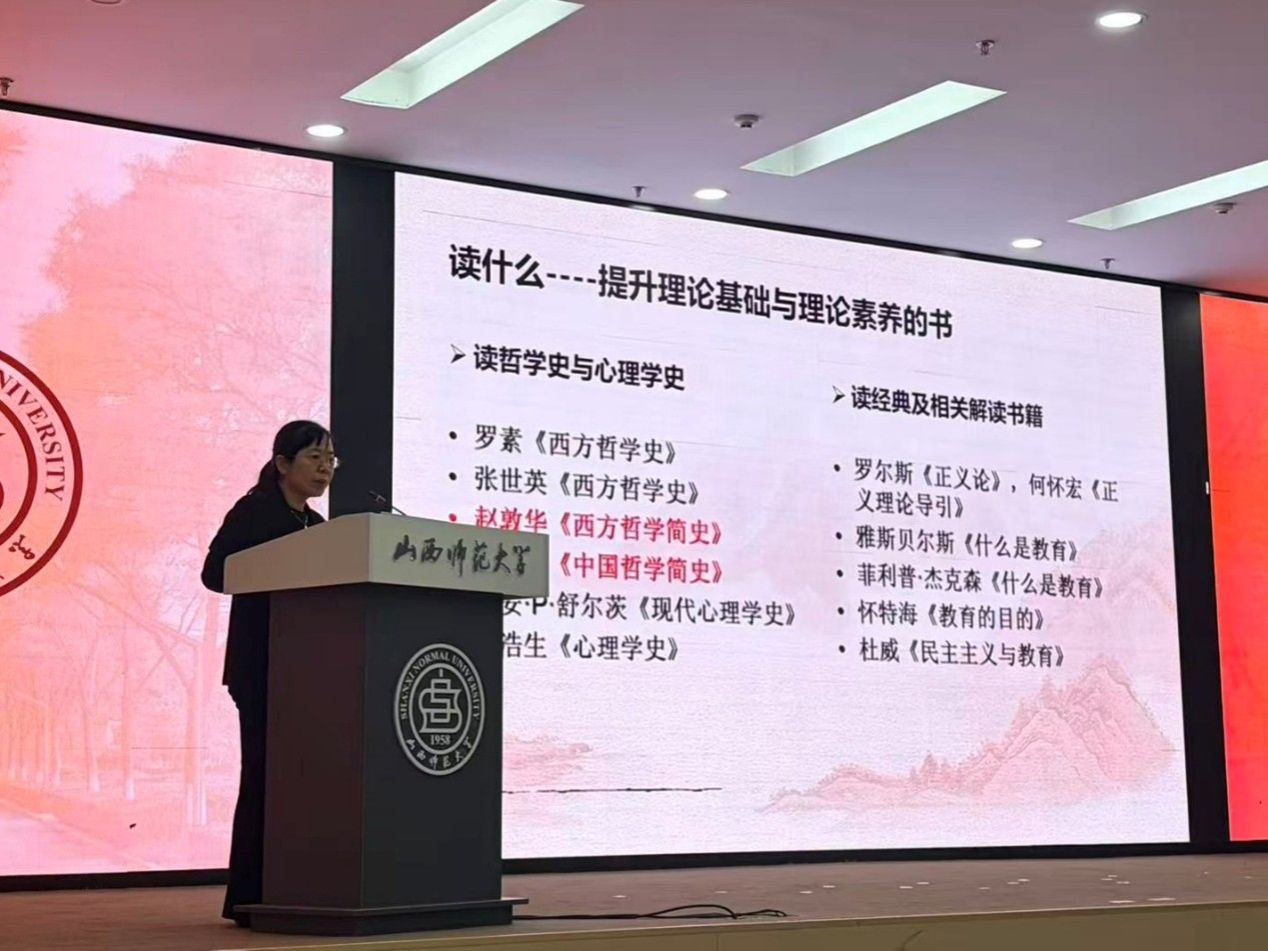 在主题报告环节,我院特邀山西大学7790必发集团游戏副院长、博士生导师徐冰鸥教授作了题为《为学无涯,研而有道——与教育学研究生谈学习》的报告,徐教授从学术兴趣培育、研究方法精进、文献研读技巧等维度,为研究生们带来了兼具理论深度与实践指导性的干货内容,鼓励学子们在积累中沉淀、在探索中突破,以严谨态度对待学术、以创新思维回应时代命题。