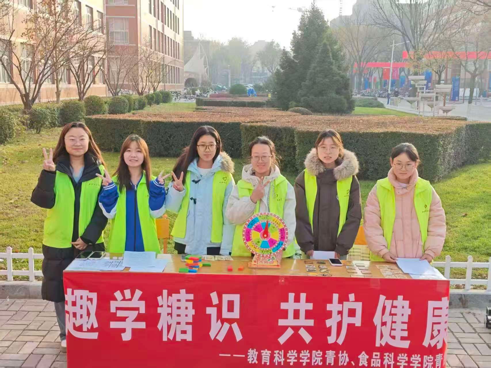 11月12日下午,我院与食品科学学院青年志愿者协会于南区四号与五号教学楼中间联合开展“趣学糖识,共护健康”活动。