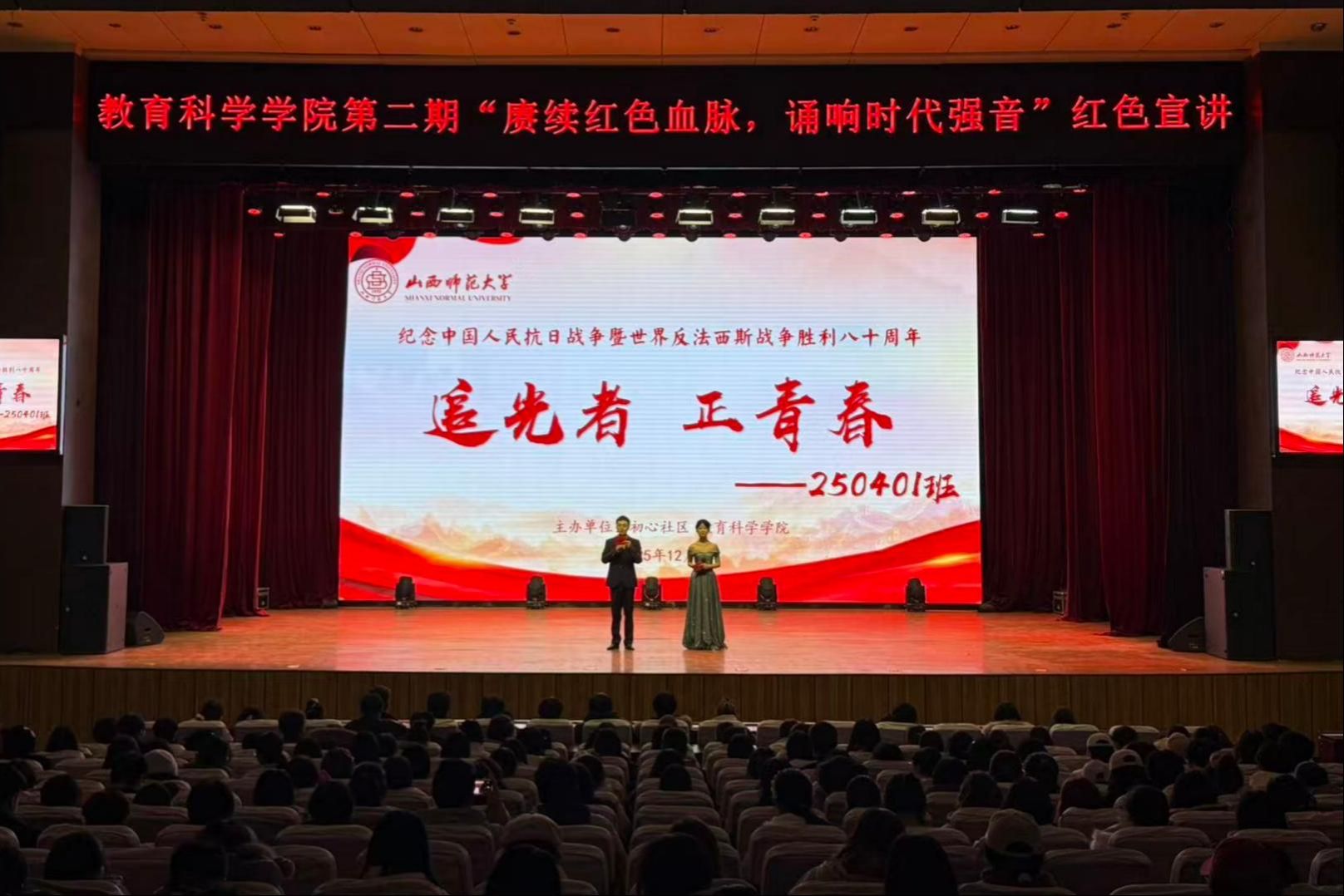 为纪念中国人民抗日战争暨世界反法西斯战争胜利八十周年,12月5日,我院在南区科学会堂报告厅举办初心社区第二期“赓续红色血脉,诵响时代强音”红色宣讲活动,院党委书记闫建璋、院长赵英、院党委副书记高霞及辅导员代表出席活动,2025级全体新生参加活动。