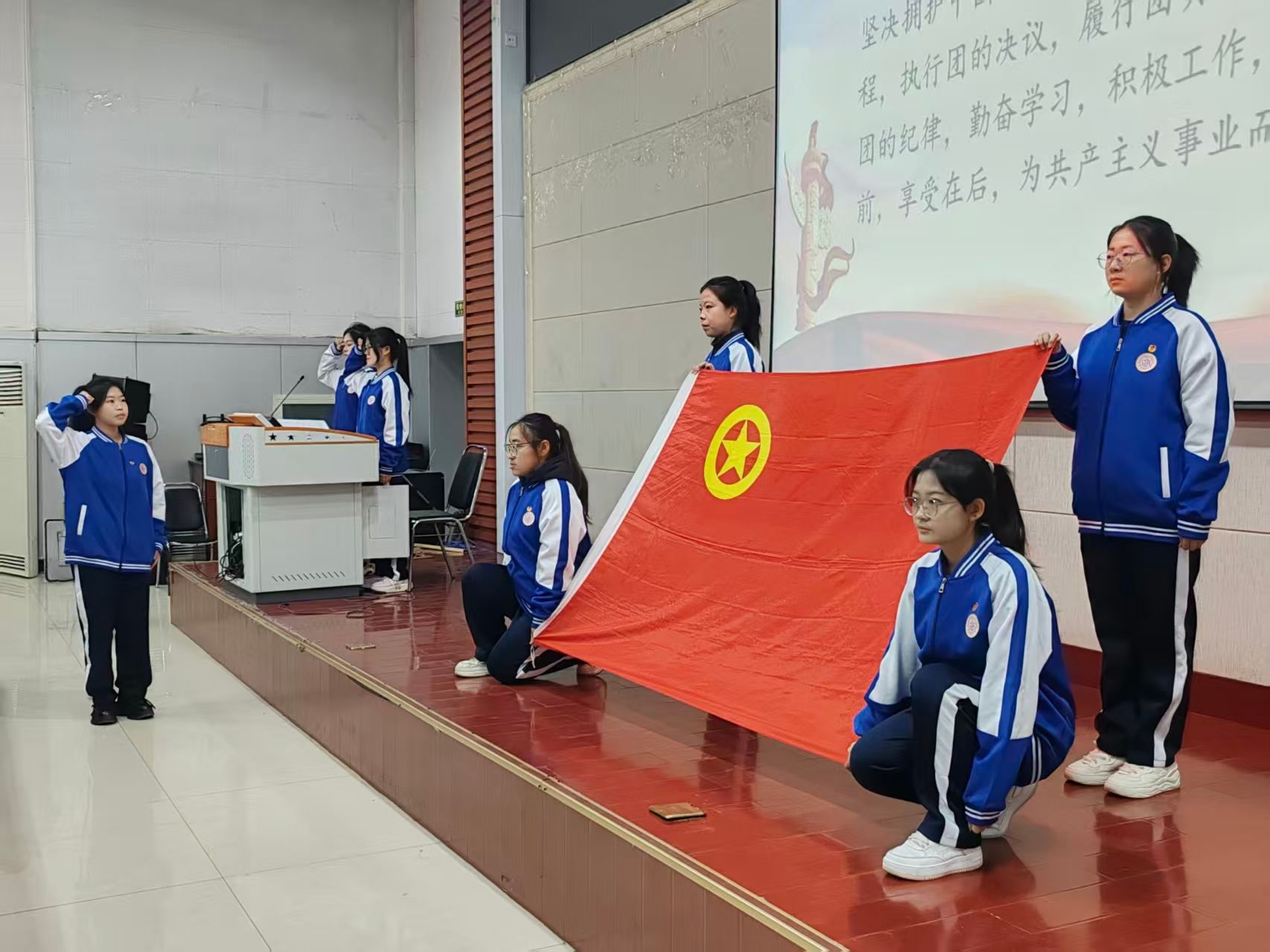 大会在激昂的团歌声中拉开帷幕,全体成员肃立迎旗,面向团旗重温入团誓词,铿锵誓言彰显出团员们对共青团组织的深厚情感与坚定信念。
