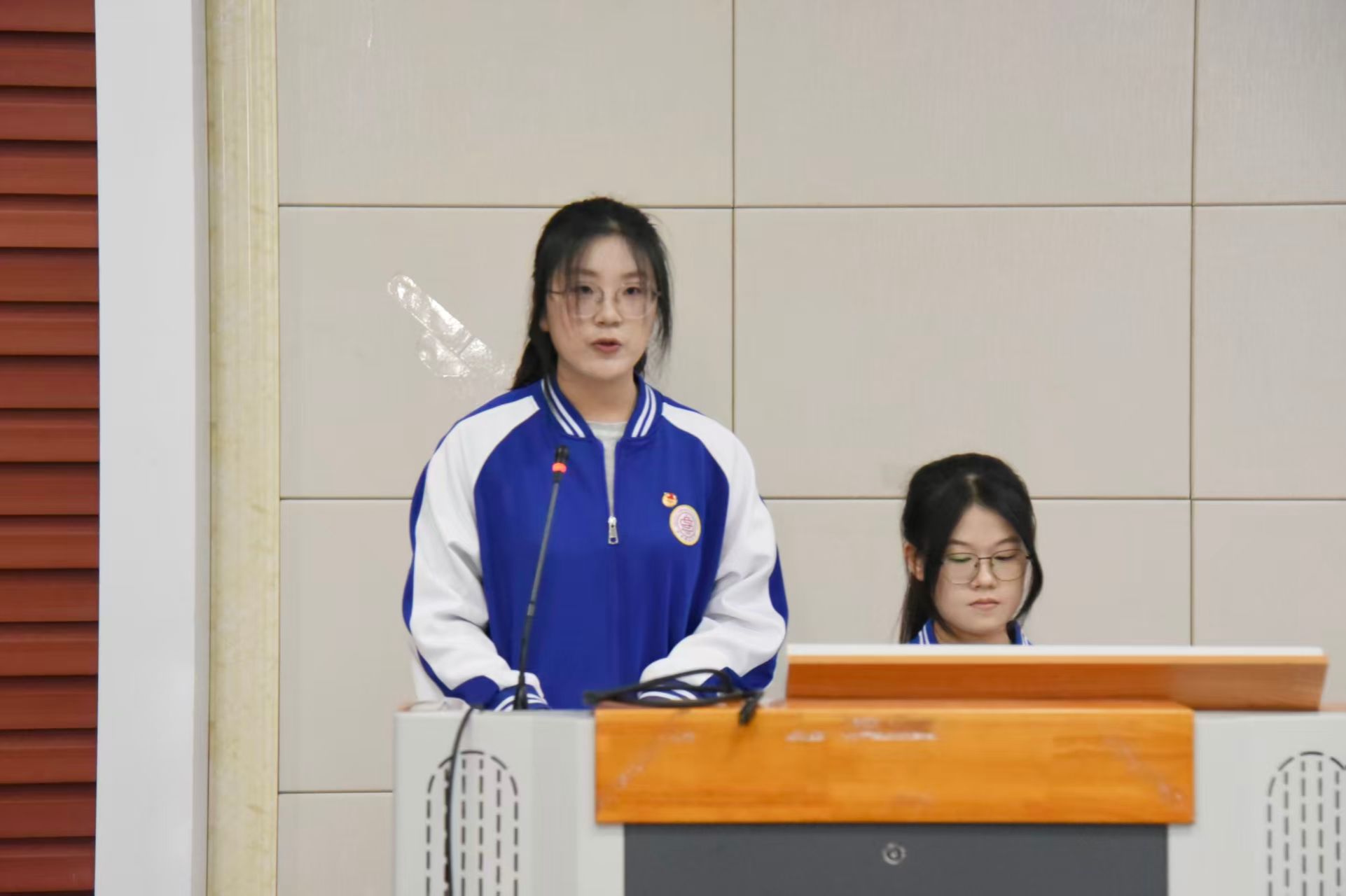 学生代表魏凡翕领学党的二十届四中全会精神,引导团员青年进一步筑牢信仰根基、明确使命担当。老团员郑重地为新团员佩戴团徽,这不仅象征着组织的接纳,更意味着责任与信仰的无声传递。新、老团员代表相继发言,共同描绘团组织砥砺前行的奋进之路,展现了先锋队伍中蕴藏的蓬勃活力与强劲动能。