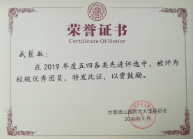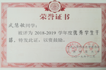 2019 年 校学生会家教服务中心金牌家教评选活动获优秀家教