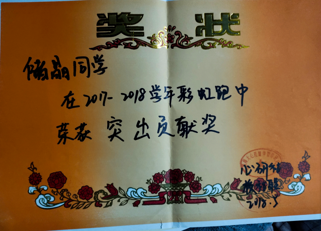 2017——2018年彩虹跑中获得突出贡献奖