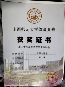 2018年第二十九届春季大学生运动会优秀志愿者