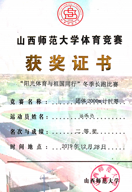 2019年冬季长跑比赛团体二等奖