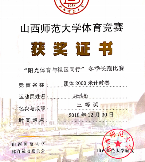 2018年冬季长跑比赛团体三等奖