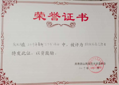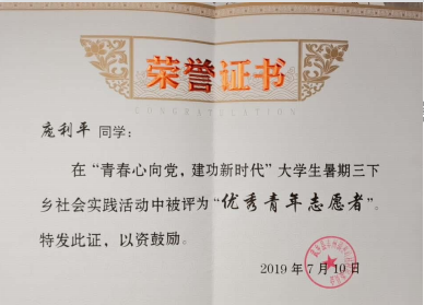 2019年暑期三下乡校级优秀志愿者